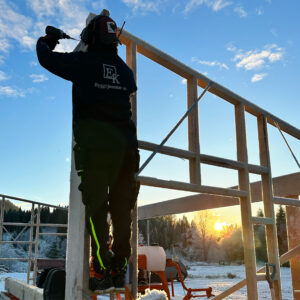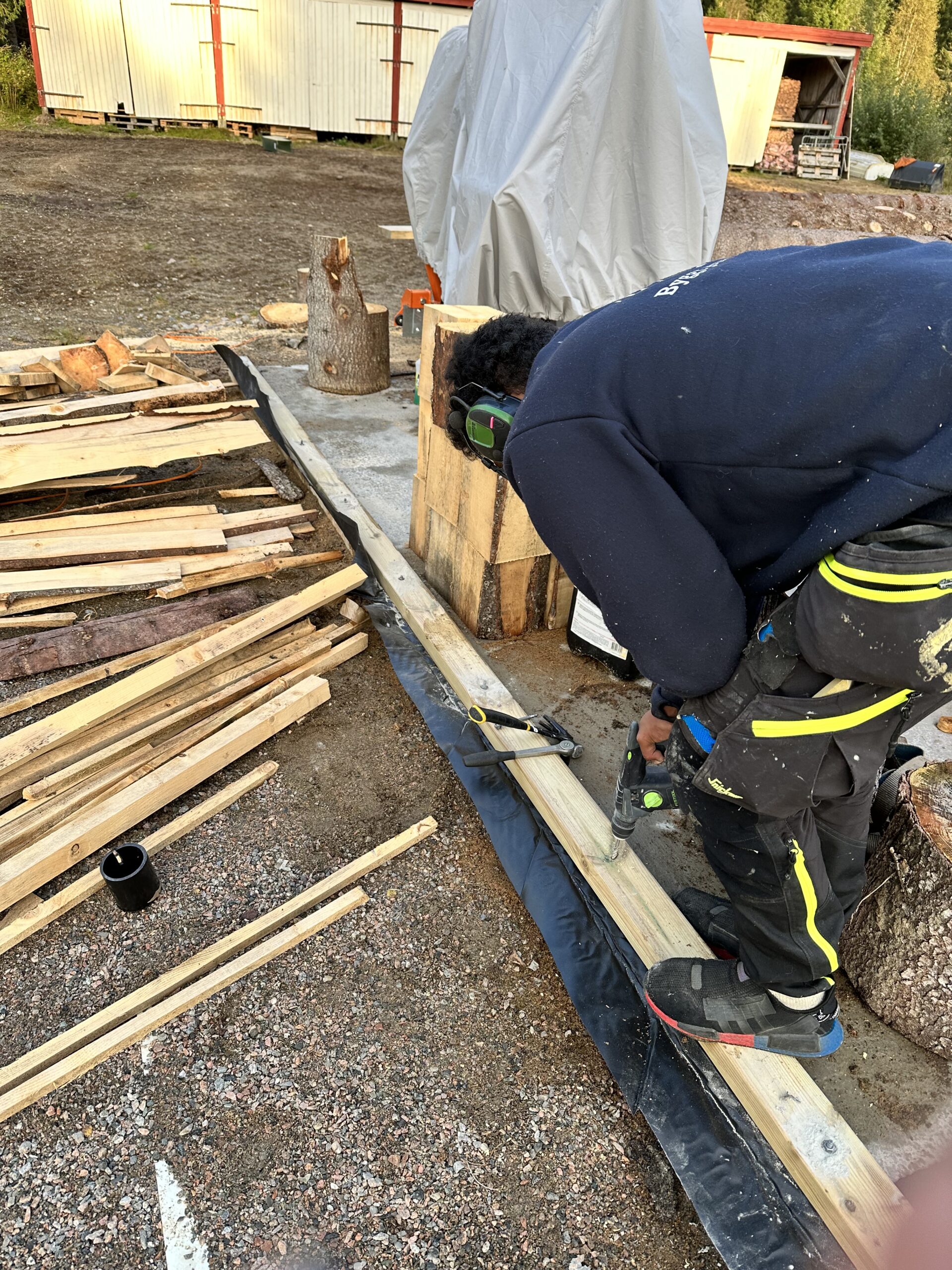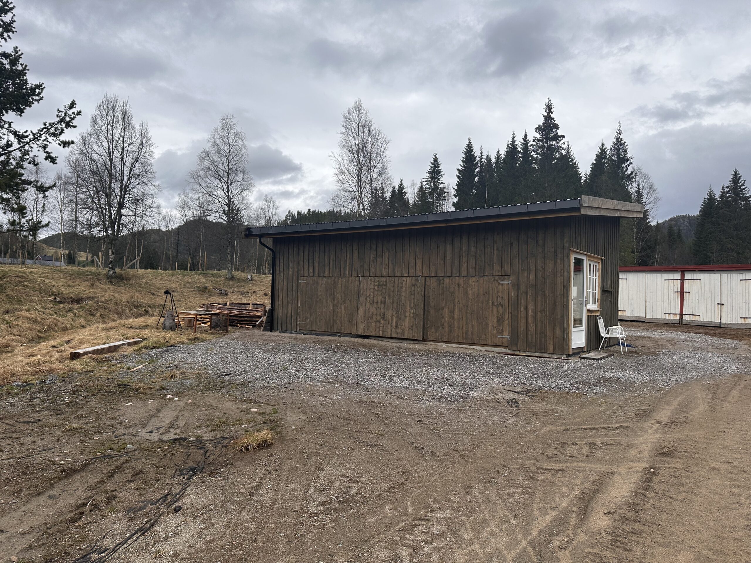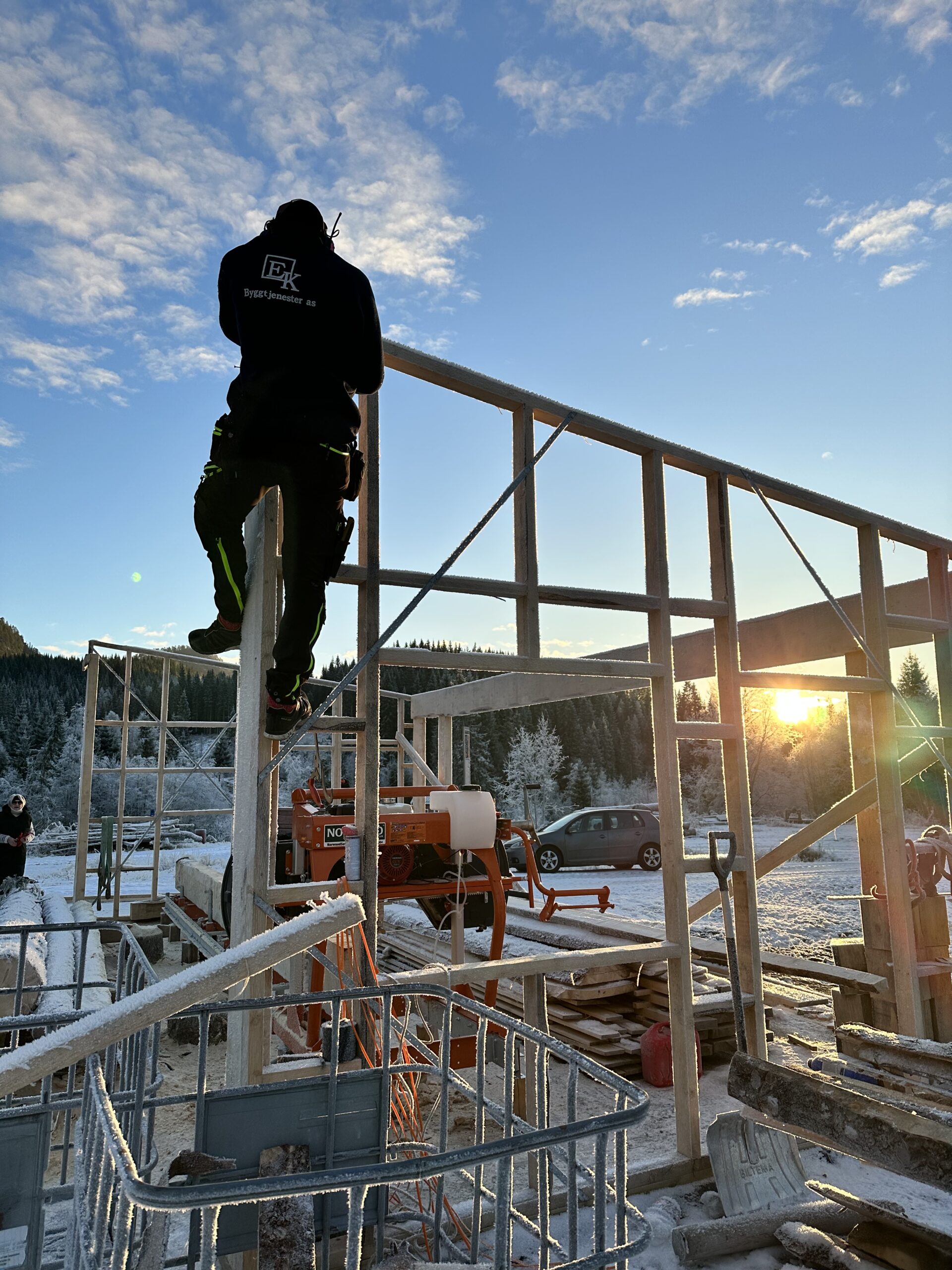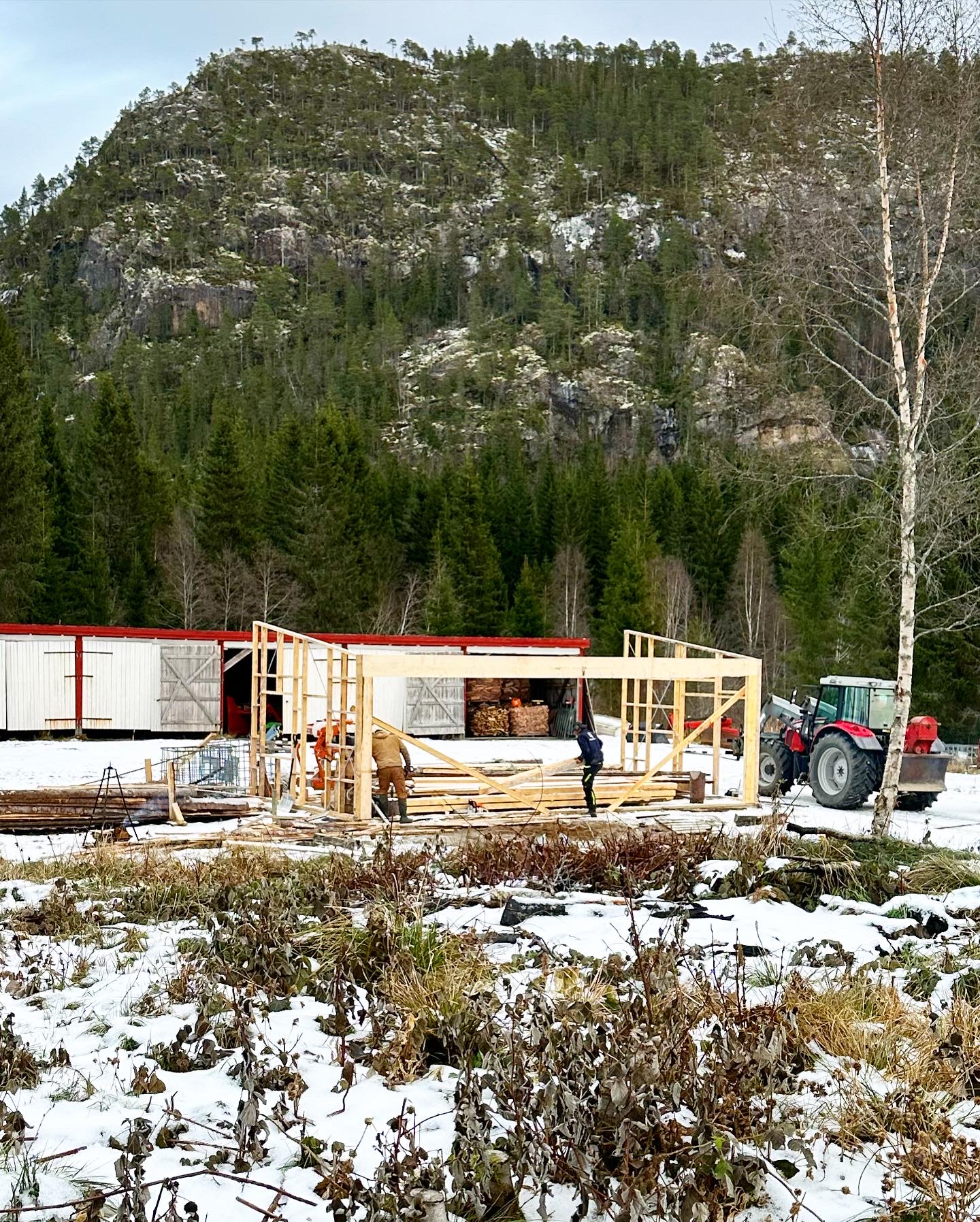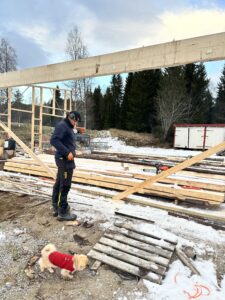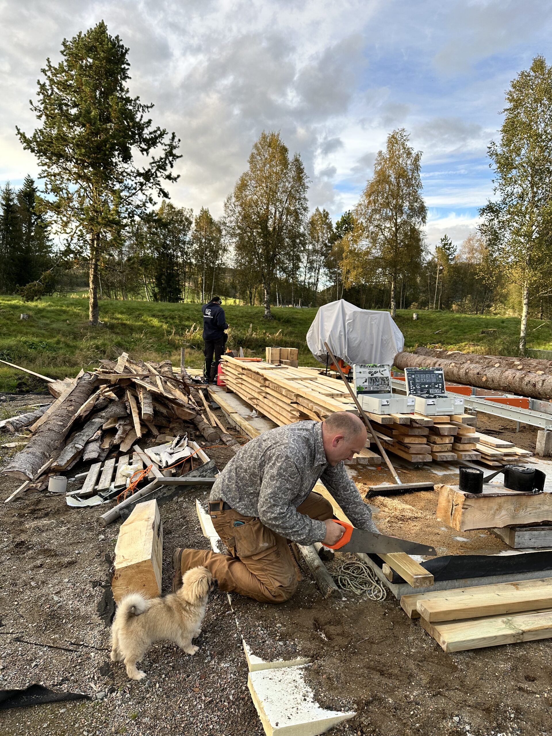 Høsten 2023 begynte Julian, Even og Thomas og sage materialer til det som skal bli saghuset. Huset begynte å ta form på senhøsten og målet er at det skal stå ferdig i løpet av 2024.
