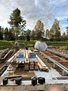 I sommer har vi montert saga og de første materialene er saget.